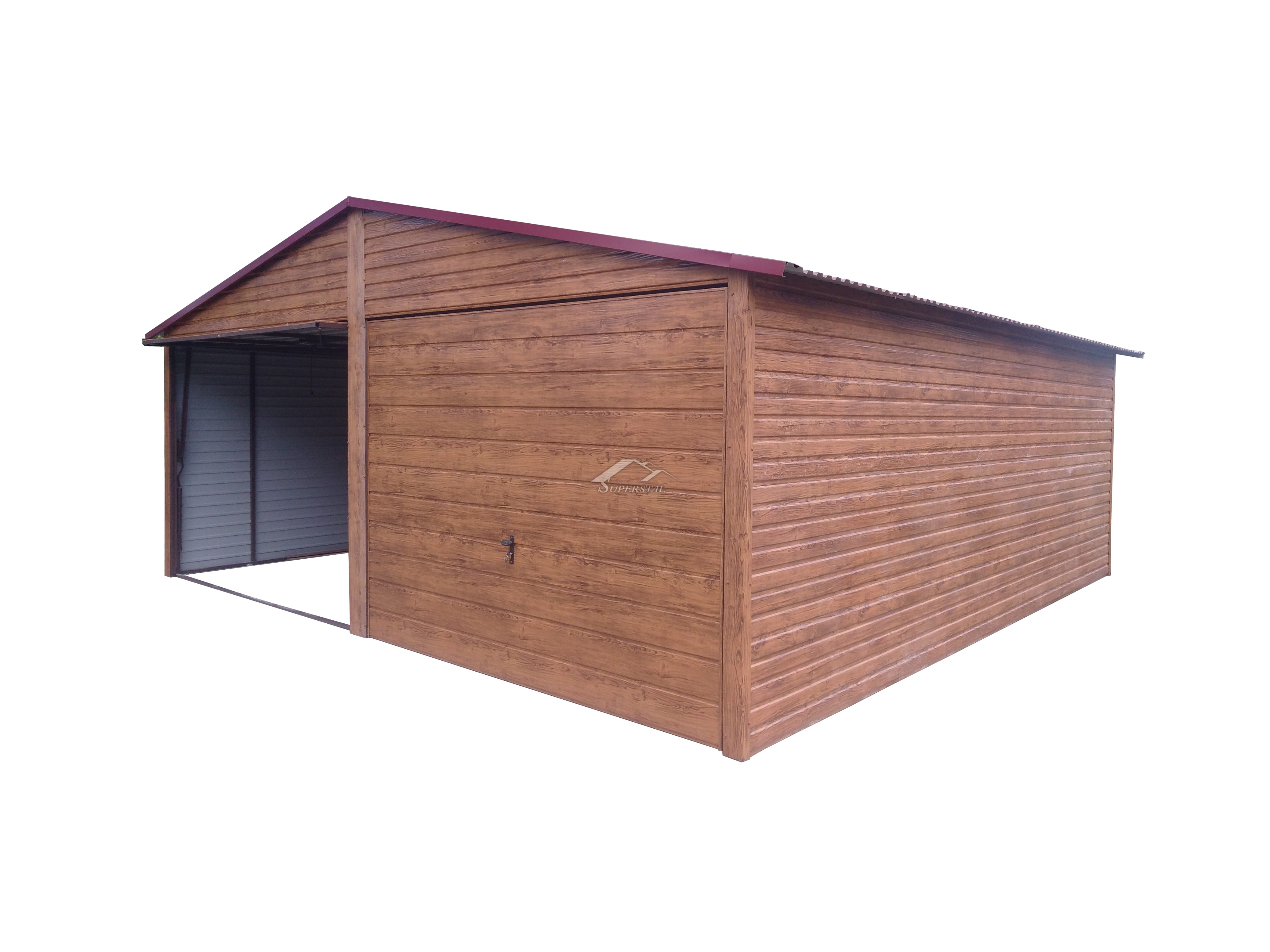 Ściany - skręcane śrubami na rogach garażu. Spawane profile w formie krzyża zapewniają stabilność i wytrzymałość konstrukcji garażu.