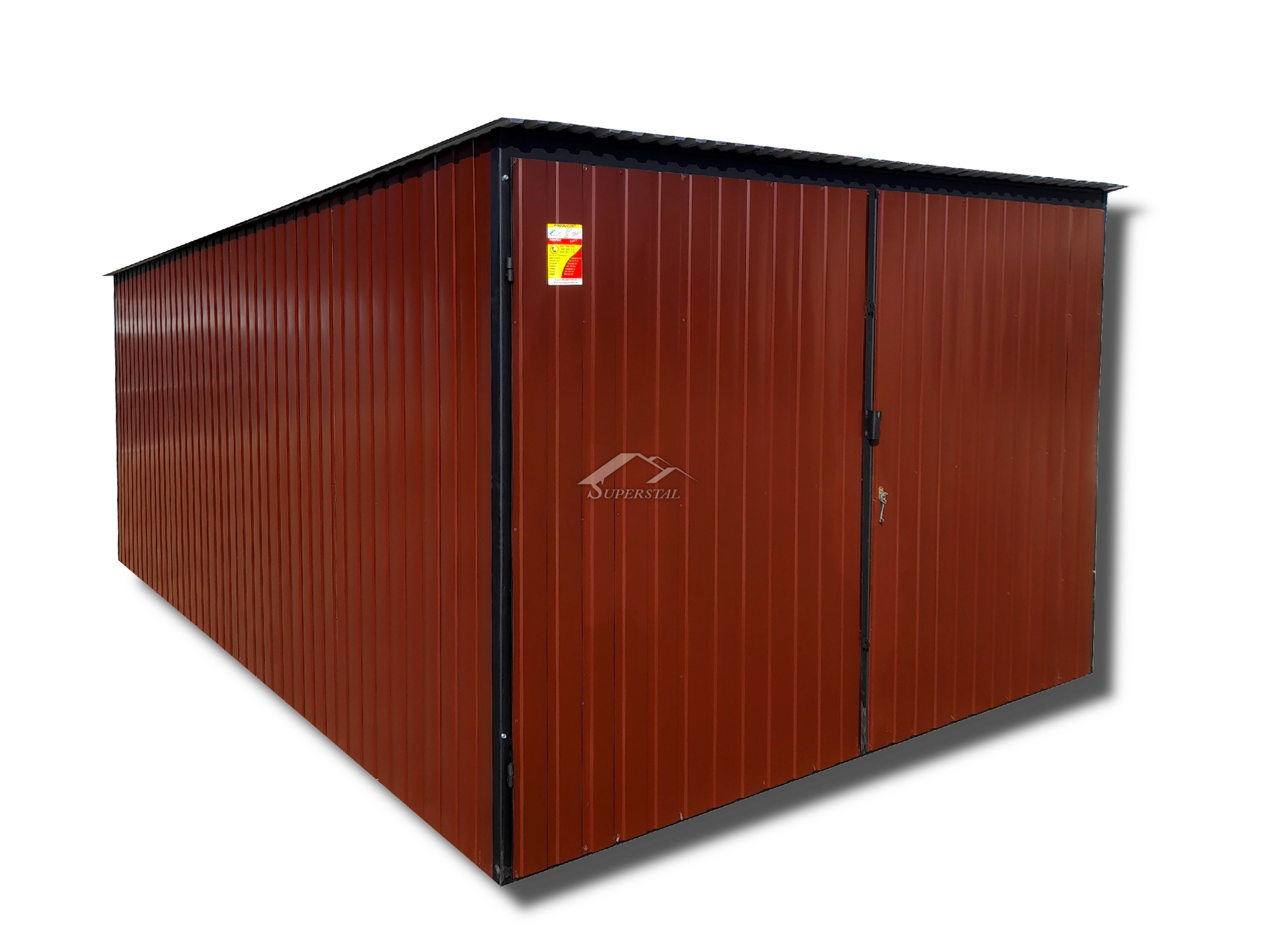 Akrila garāža ar izmēriem 3x5 m.Jumta slīpums uz aizmuguri un divvērtņu vārtiem, iespēja izvēlēties individuālu krāsu variantu.